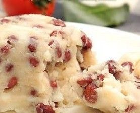 14、將紅豆加到白山藥泥中,攪拌均勻。