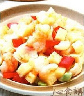 1.山藥去皮和甜椒切丁狀;百合剝片;青蔥切小段狀;蝦仁由蝦背處從頭到尾劃一刀(勿切斷)備用